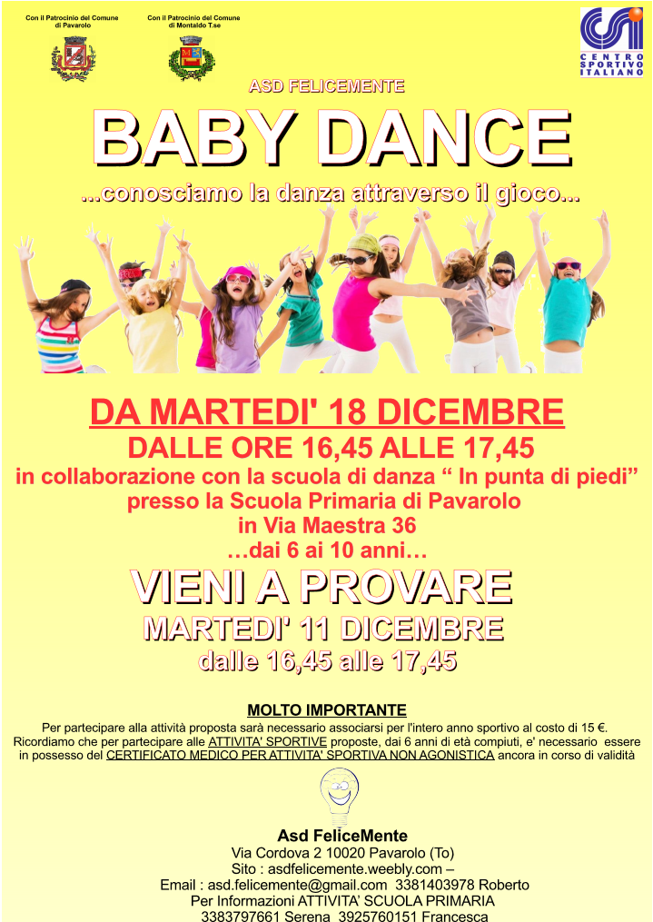 ASD Felicemente in collaborazione con la scuola di danza "In punta di piedi" propone corso di Baby Dance - conosciamo la danza attraverso il gioco