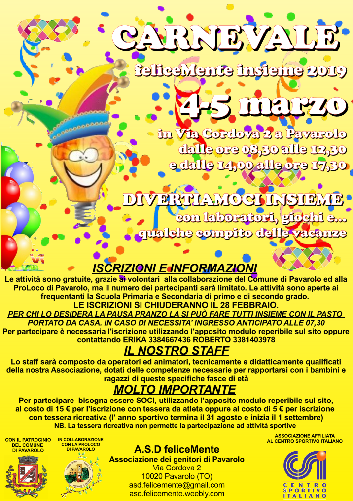 4-5 marzo - CARNEVALE - feliceMente insieme 2019