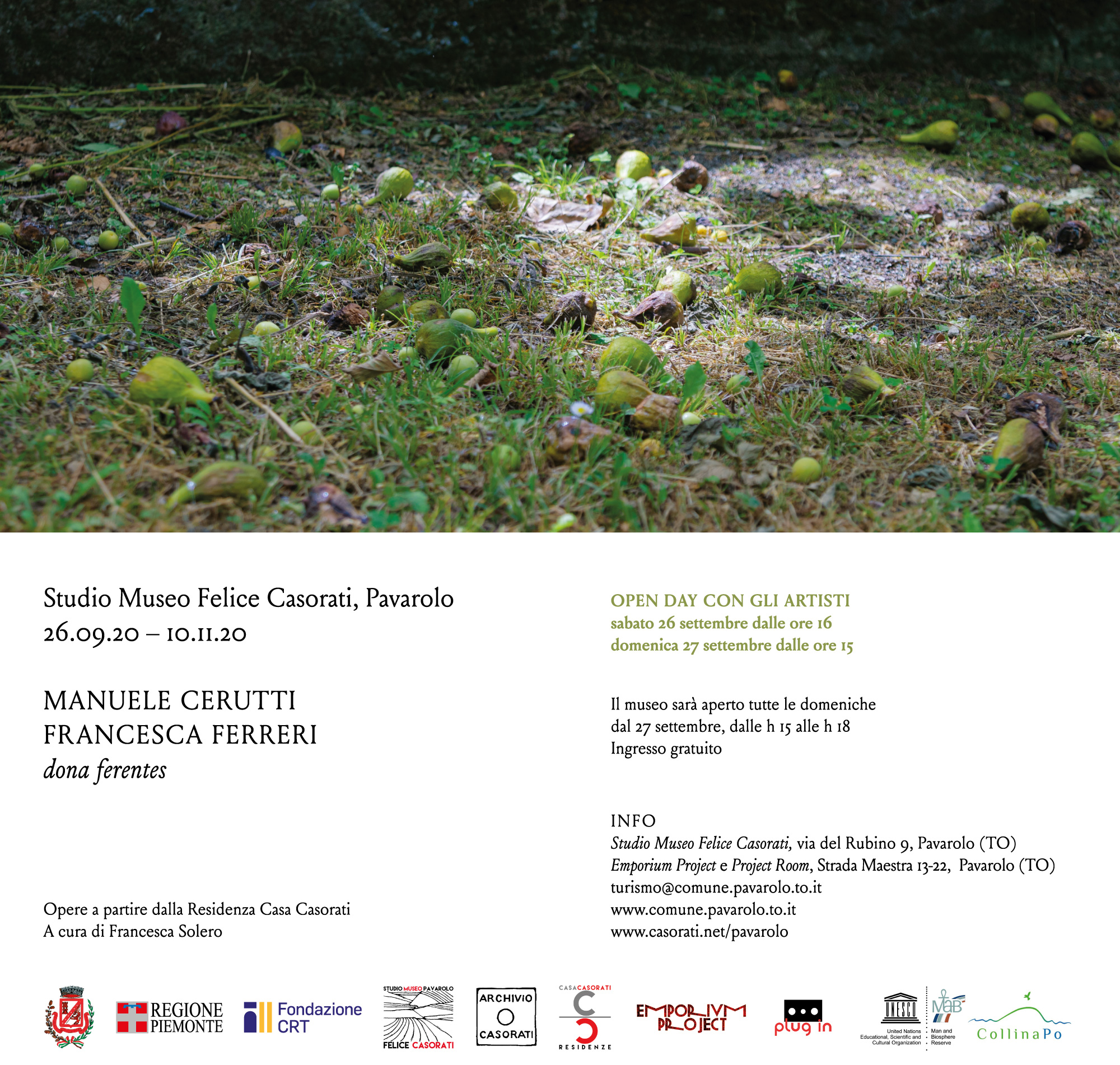 dal 26 settembre sarà aperta al pubblico la mostra “Dona ferentes”, di Manuele Cerutti e Francesca Ferreri, curata da Francesca Solero, all’interno dello studio museo Felice Casorati di Pavarolo e negli spazi del paese riconvertiti all’arte contemporanea di project room.