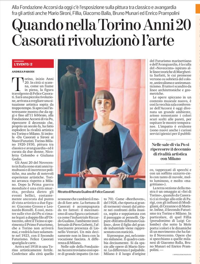 Ore 14.30: visita alla mostra "Da Casorati a Sironi ai nuovi Futuristi" e percorso museale Accorsi-Ometto