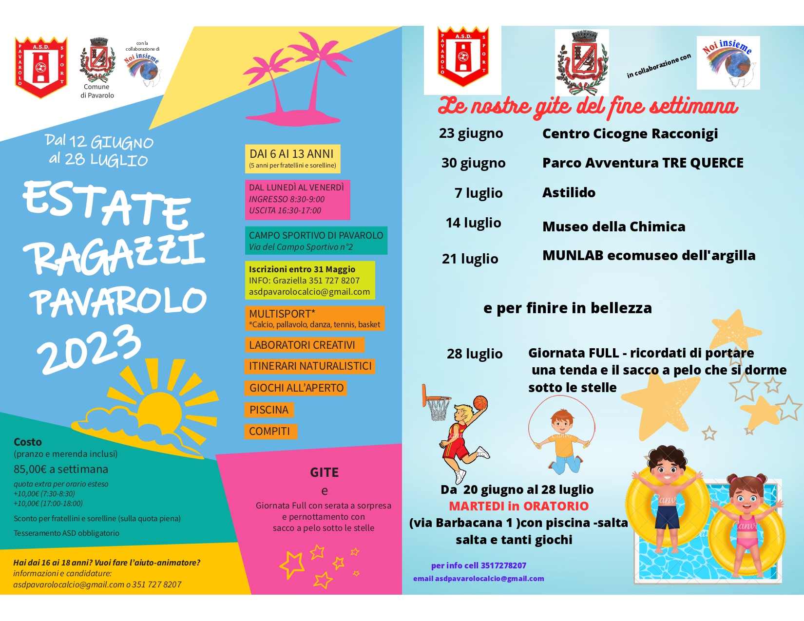 L'ASD Pavarolo sport Aps promuove e organizza per l'estate 2023 le seguenti iniziative.
