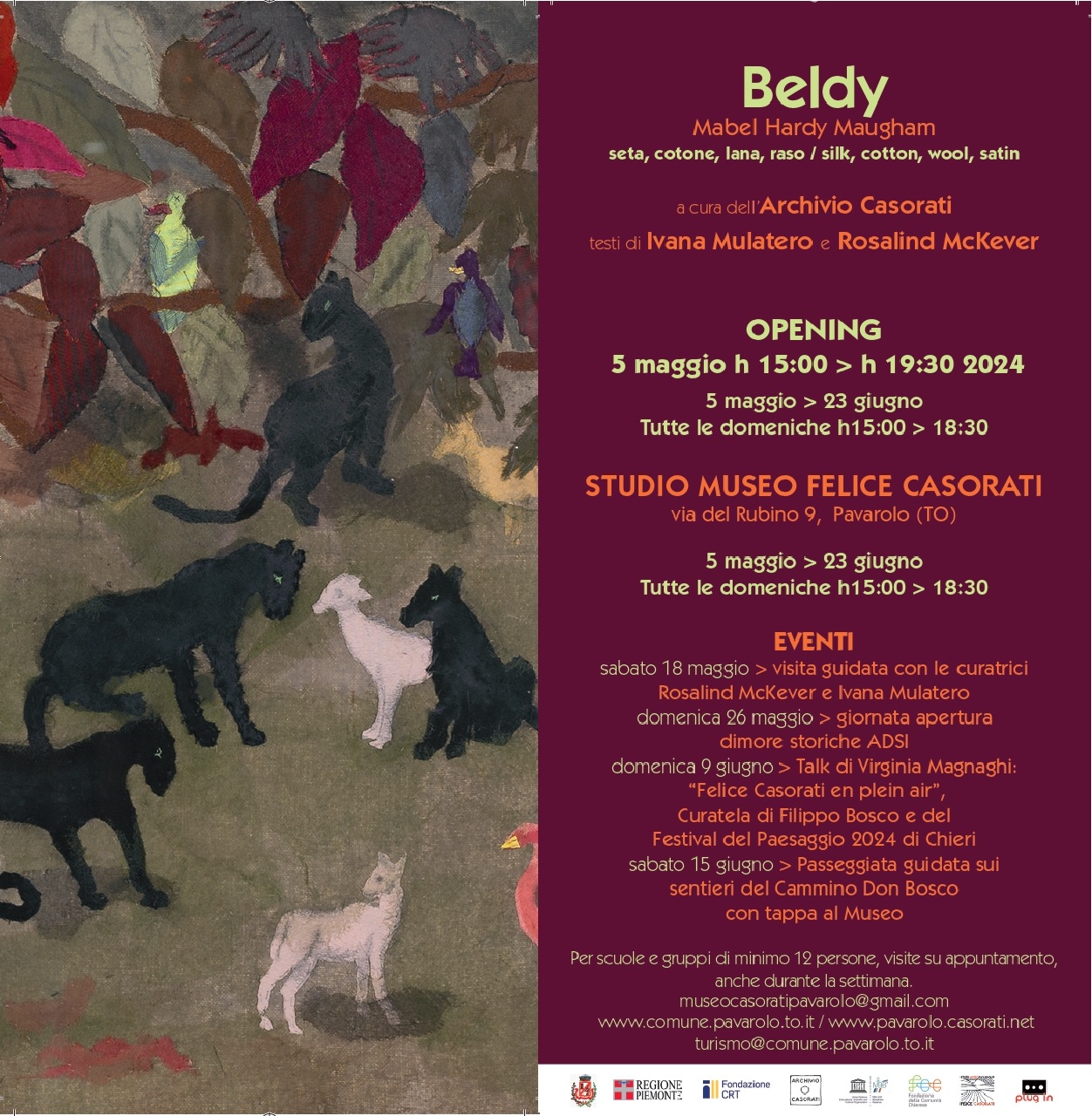 Saranno 25 le opere esposte nella mostra primaverile presso lo Studio Museo Felice Casorati a Pavarolo (TO) realizzate da BELDY (Mabel Hardy Maugham) e selezionate dall’Archivio Casorati in collaborazione con la storica e critica d’arte Ivana Mulatero, direttrice del Museo Civico Luigi Mallé di Dronero (CN), e la storica dell’arte Rosalind McKever, curatrice dei dipinti e dei disegni del Victorian and Albert Museum di Londra, i cui testi critici sono inclusi nel catalogo.