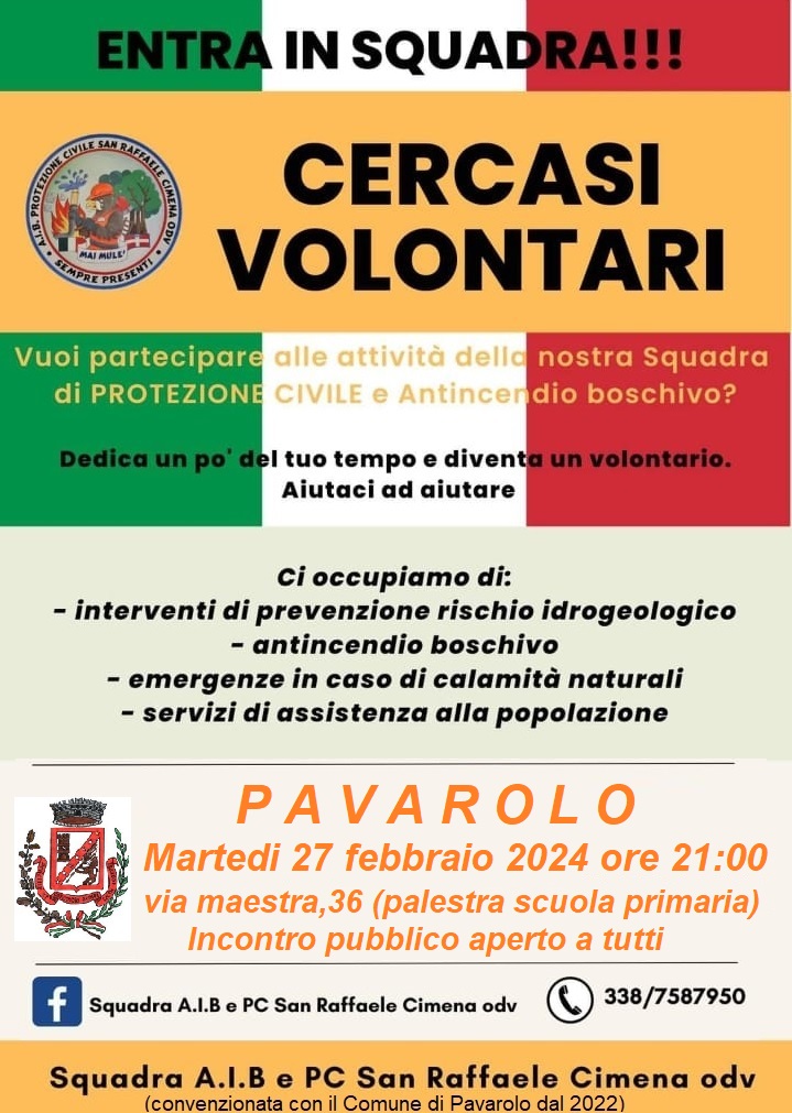- Il Comune di Pavarolo persegue l’obiettivo di formare e consolidare una propria struttura da individuarsi nell’ambito del volontariato locale, finalizzata alla prevenzione e gestione delle emergenze e alla gestione della sicurezza eventi sul proprio territorio.