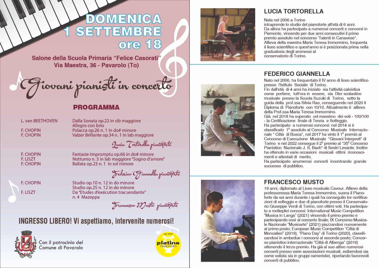 Domenica 1/9/2024 ore 18:00 - Giovani pianisti in concerto