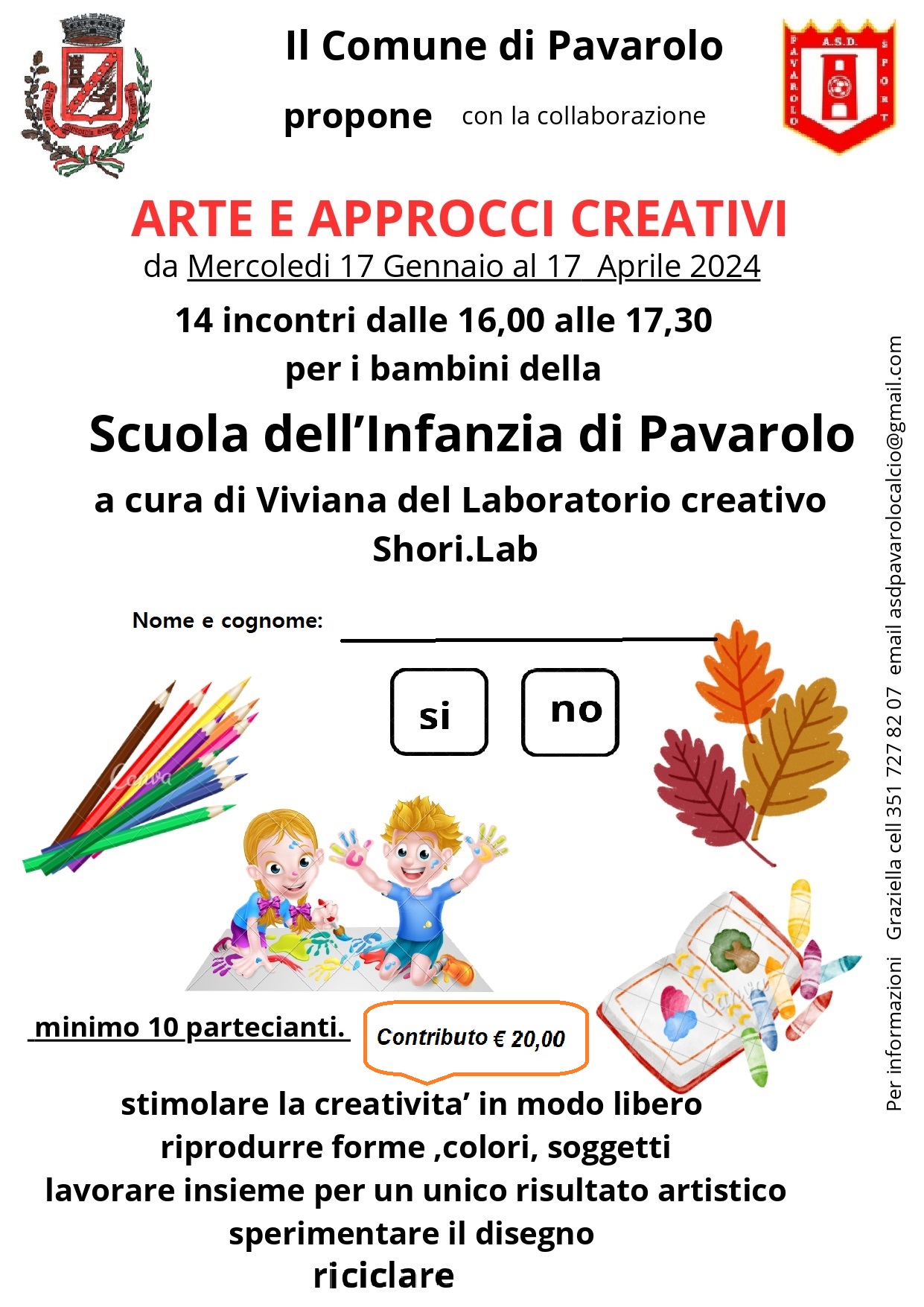 - Laboratorio "Musica senza Frontiere" studio alternativo di musica per l'infanzia ( metodi: DALCROZE e ORFF-SCHULWERK e Maria Montessori) - il corso è gratuito ed offerto dal Comune e dall'ASD Pavarolo sport.
