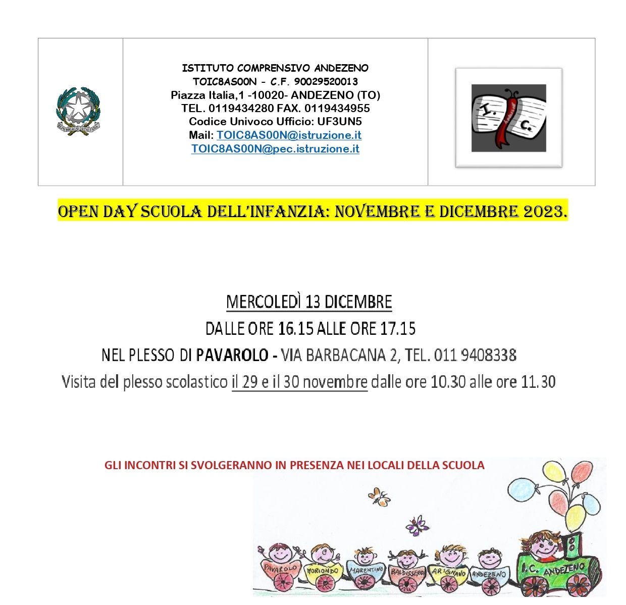 I.C. ANDEZENO - scuola infanzia - codice plesso di PAVAROLO : TOAA8AS03L