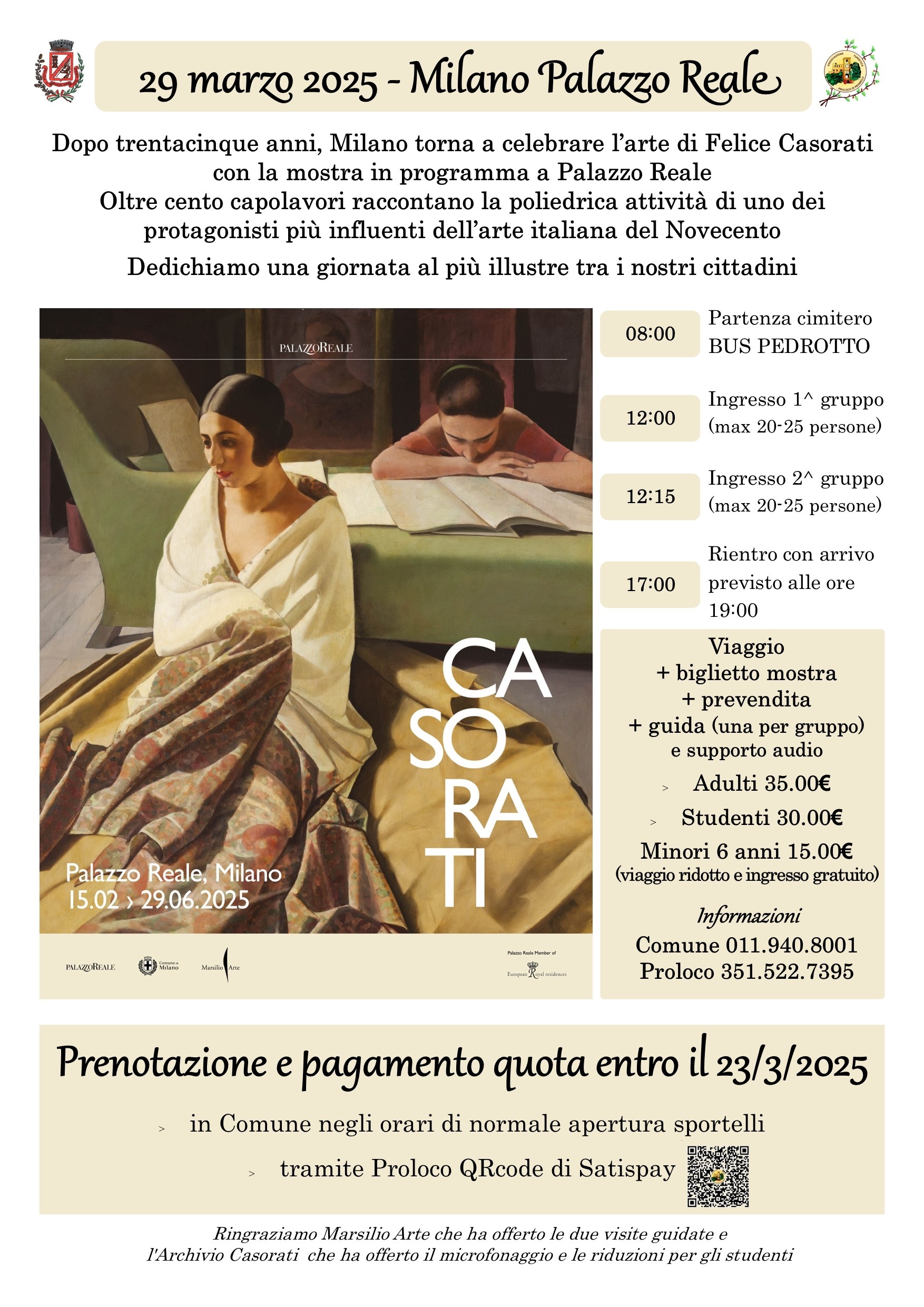 Il Comune di Milano e Marsilio Arte presentano una delle più ampie e complete retrospettive dedicate a Felice Casorati (Novara, 1883 - Torino, 1963), straordinario artista italiano che torna a Milano a Palazzo Reale dal 15 febbraio al 29 giugno 2025, dopo 35 anni dall'ultima mostra del 1990. Promossa da Comune di Milano-Cultura e prodotta da Palazzo Reale e Marsilio Arte in collaborazione con l'Archivio Casorati, la mostra è curata da Giorgina Bertolino, Fernando Mazzocca e Francesco Poli, tra i maggiori studiosi dell'opera casoratiana.