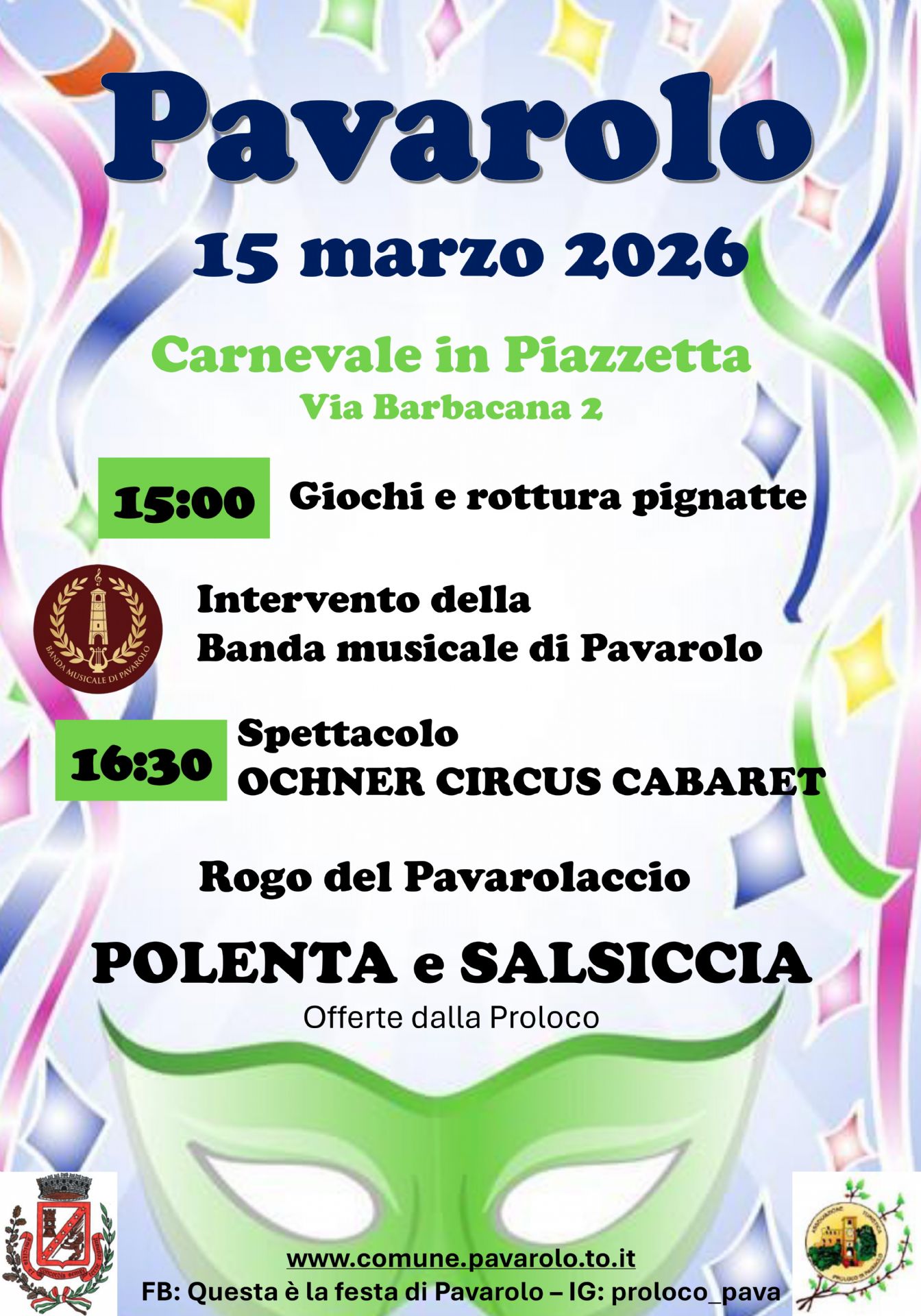 Domenica 16 marzo 2025 CARNEVALE IN PIAZZETTA (Via Barbacana,2)