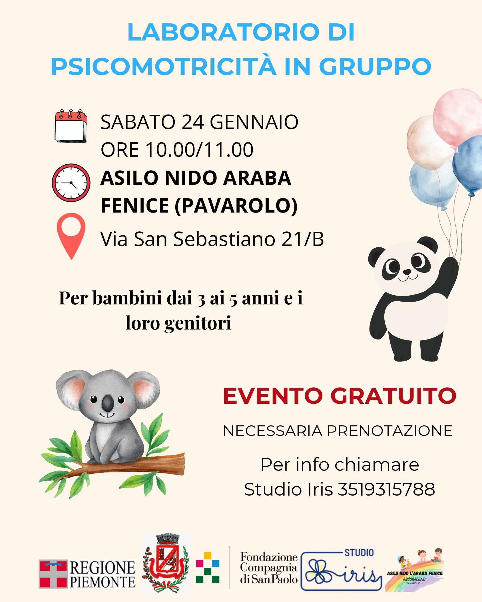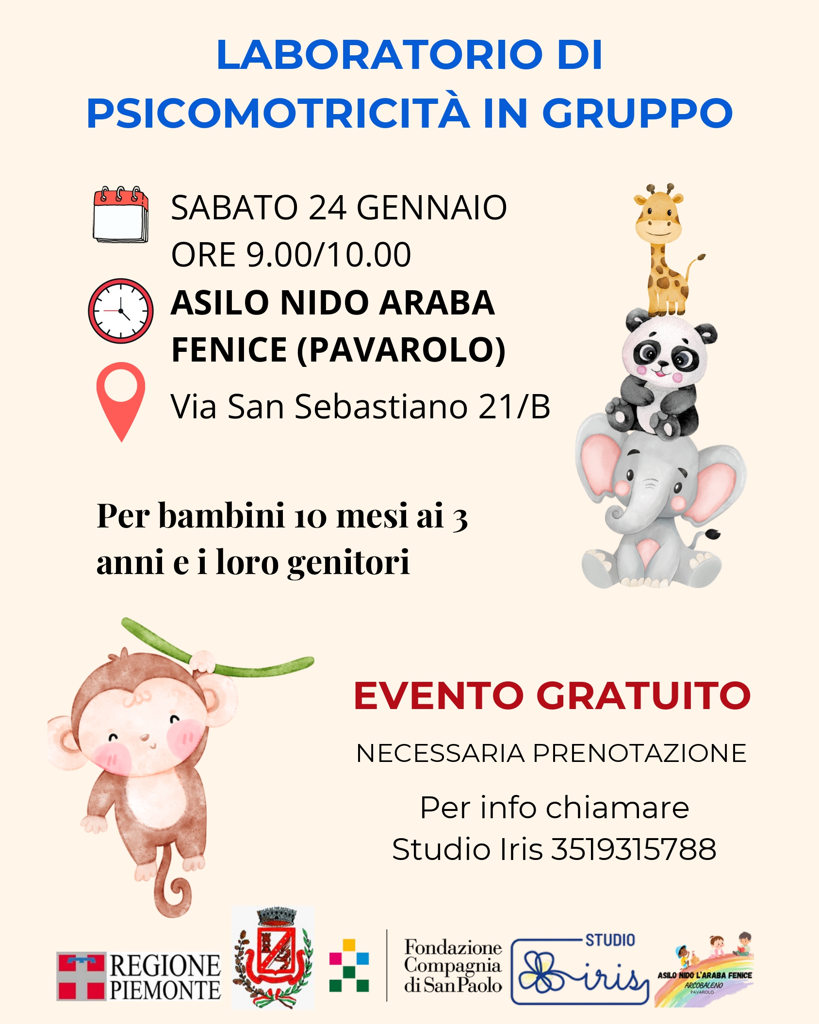 - ore 10:00 Laboratorio di psicomotricità per bambini 3 anni (con le dott.sse dello Studio IRIS)