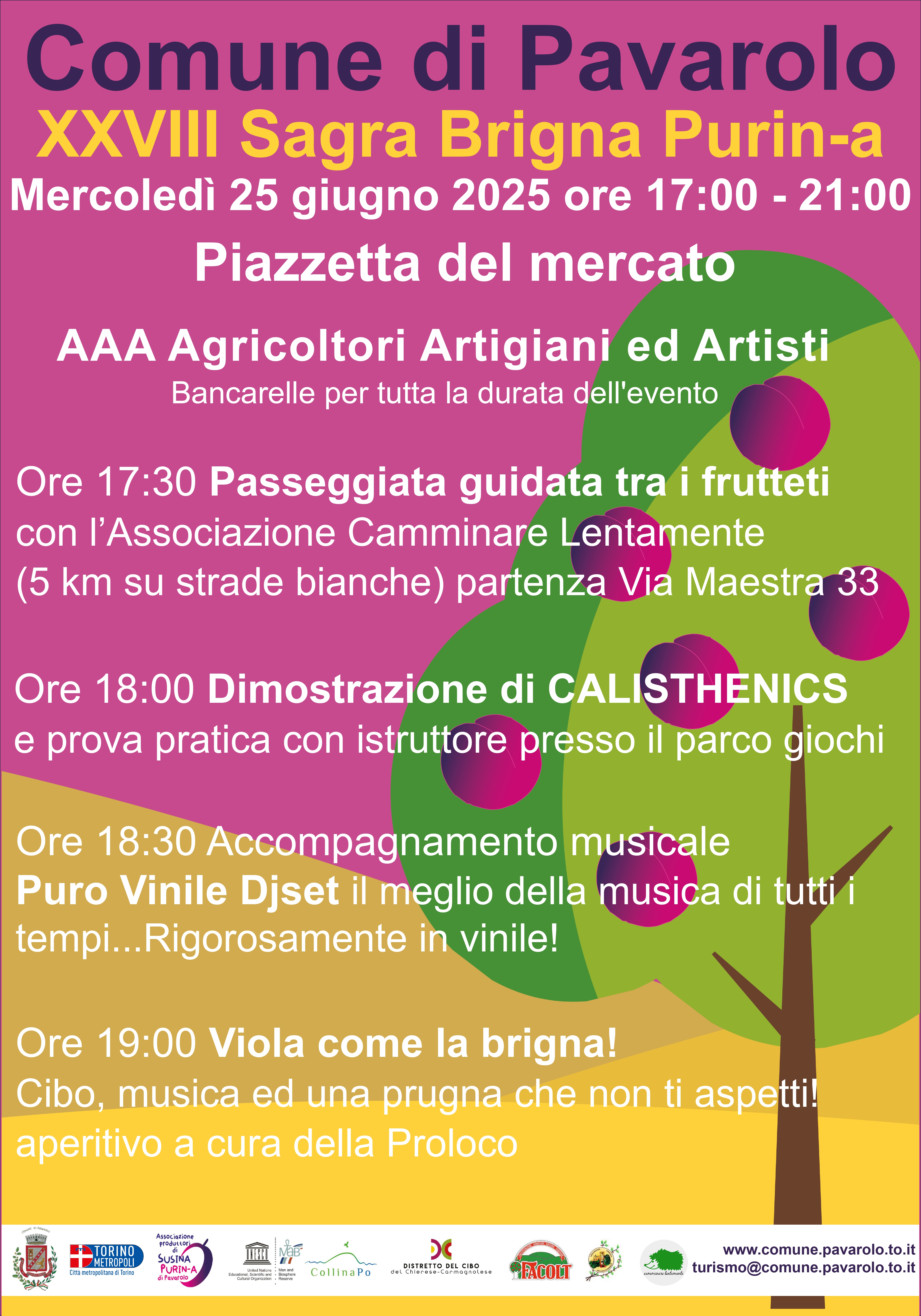 Ore 17:30 Passeggiata guidata tra i frutteti con l'Associazione Camminare Lentamente ritrovo nella piazzetta del mercato - via maestra,33 (itinerario di circa 5 km su strade bianche).