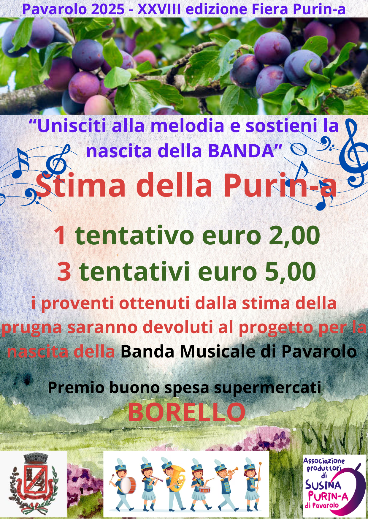 Ore 17:00 Stima della Purin-a indovina quante purin-e ci sono nel barattolo esposto e vinci il buono spesa da utilizzare nei supermercati BORELLO ....... e se non vinci il buono spesa vinci in solidarietà sostenendo il gruppo musicale che sta tentando di ricostituire LA BANDA MUSICALE DI PAVAROLO !!!!