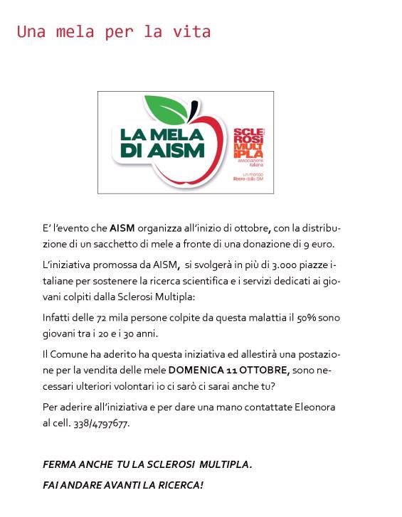 Domenica 11/10/2015 nelle piazze di Pavarolo saranno in vendita sacchetti di mele per la raccolta fondi.