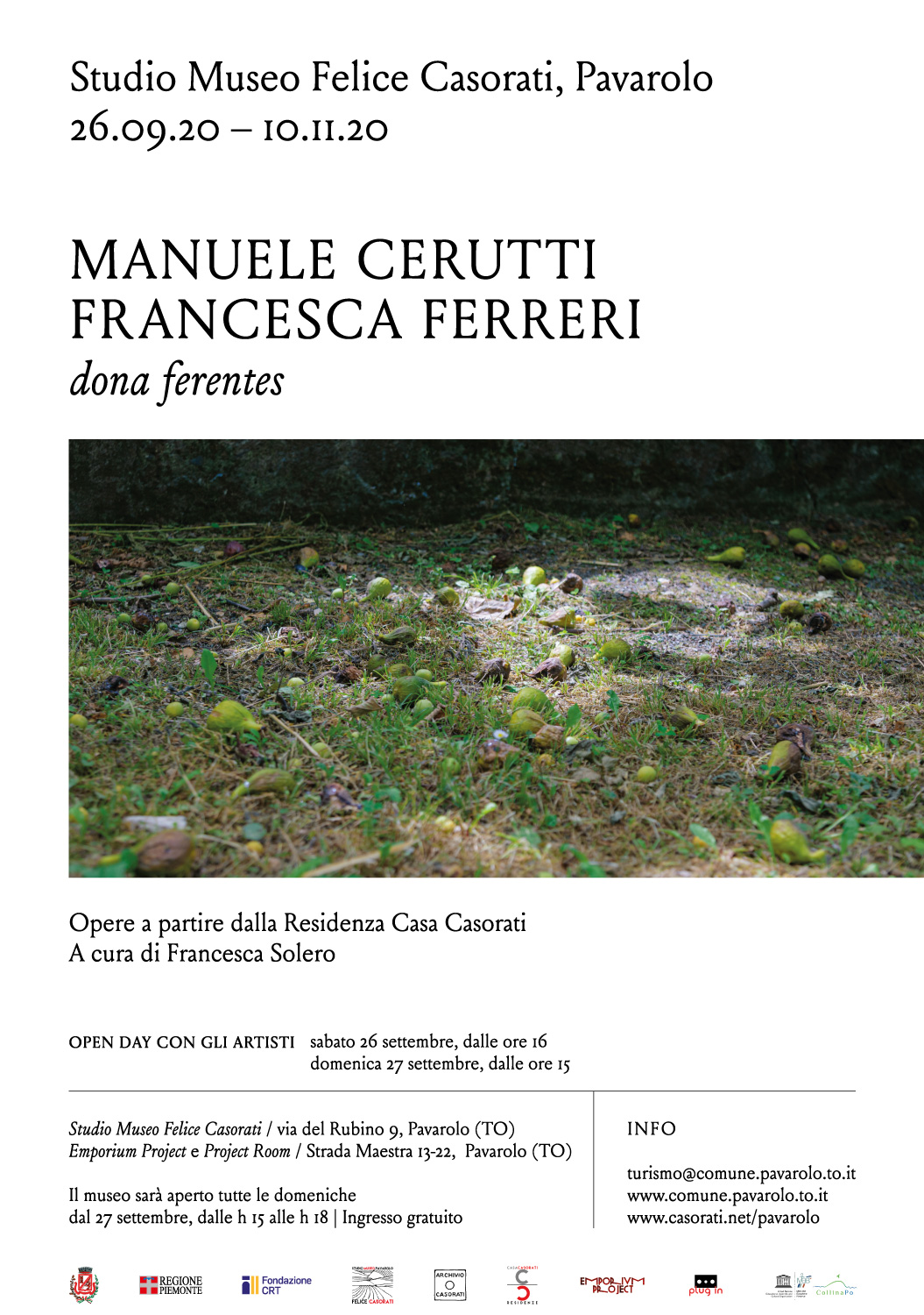 dal 26 settembre sarà aperta al pubblico la mostra “Dona ferentes”, di Manuele Cerutti e Francesca Ferreri, curata da Francesca Solero, all’interno dello studio museo Felice Casorati di Pavarolo e negli spazi del paese riconvertiti all’arte contemporanea di project room.