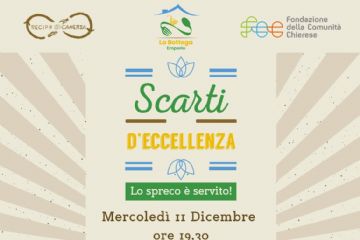 Invito a “Scarti d’Eccellenza” cena natalizia di Raccolta Fondi organizzata da Fondazione della Comunità Chierese e ReciprocaMensa