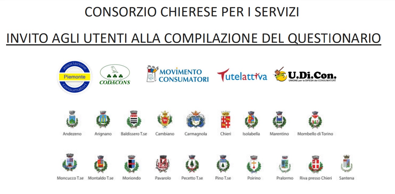 AL VIA LA VALUTAZIONE DEL LIVELLO DI SODDISFAZIONE DEL SERVIZIO DI RACCOLTA RIFIUTI, IGIENE URBANA E GESTIONE TARI NEL CONSORZIO CHIERESE PER I SERVIZI - INVITO AGLI UTENTI ALLA COMPILAZIONE DEL QUESTIONARIO