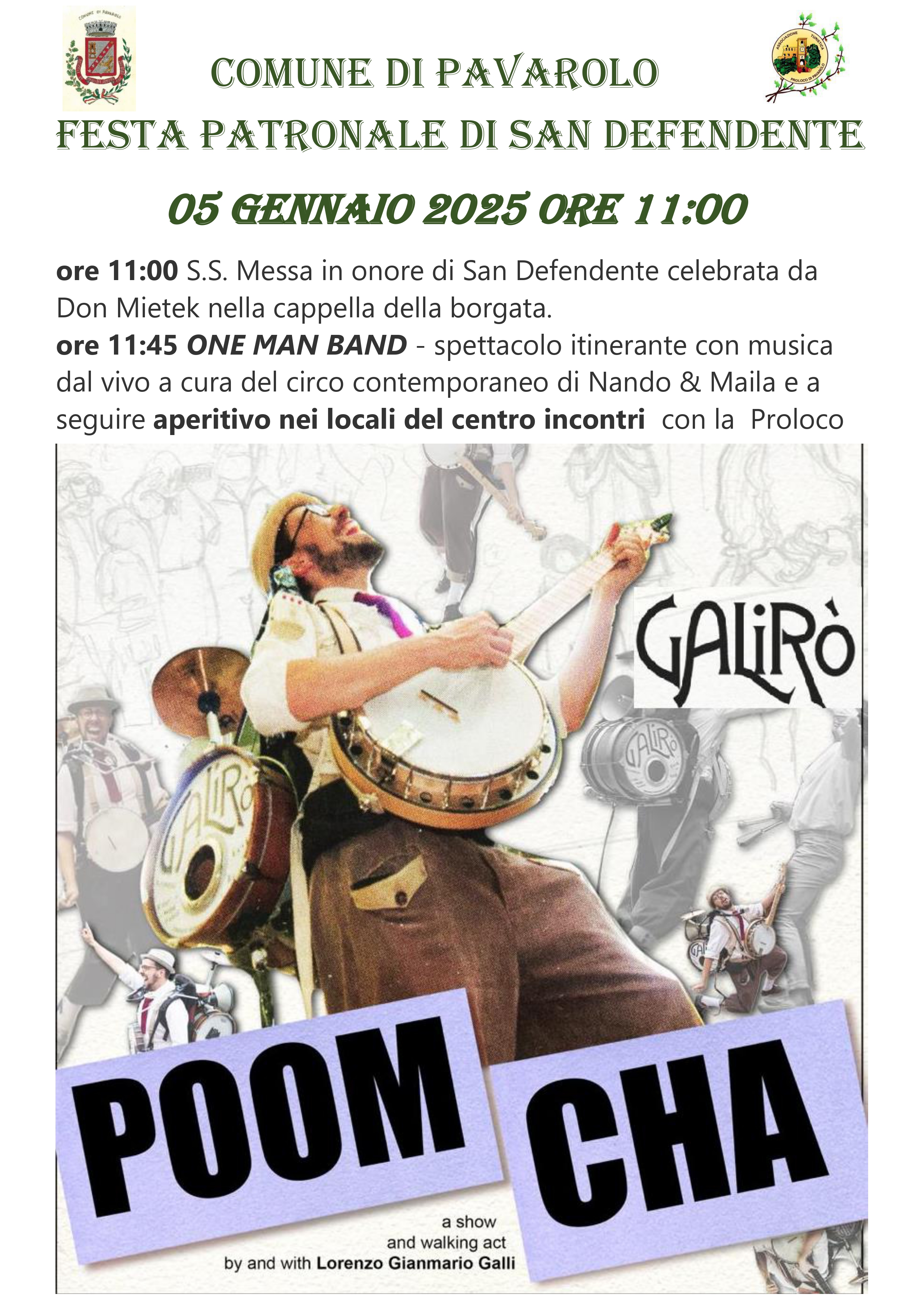 ore 11:45 ONE MAN BAND - spettacolo itinerante con musica dal vivo a cura del circo contemporaneo di Nando & Maila. Una commedia interattiva con musica completamente dal vivo, una performance itinerante piena di energia. Questo spettacolo è un brioso ed energico Gioco Musicale che si basa sulla forza del performer in scena e della sua one man band.