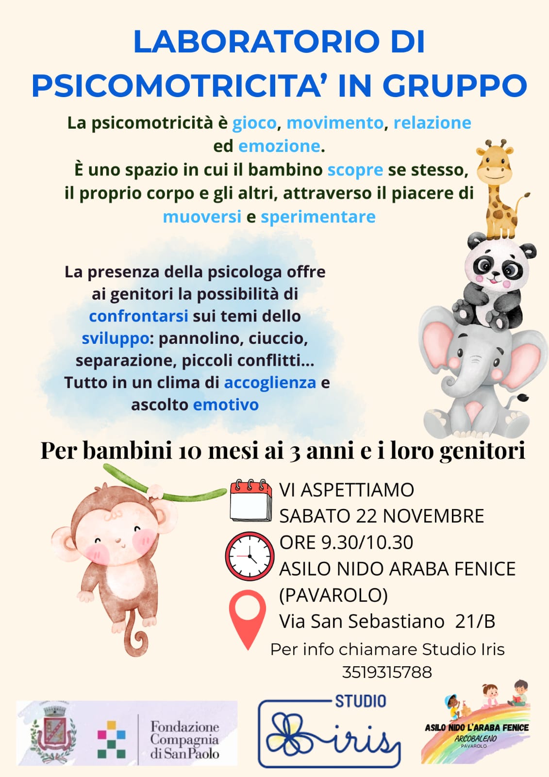 - ore 10:00 Laboratorio di psicomotricità per bambini 3 anni (con le dott.sse dello Studio IRIS)