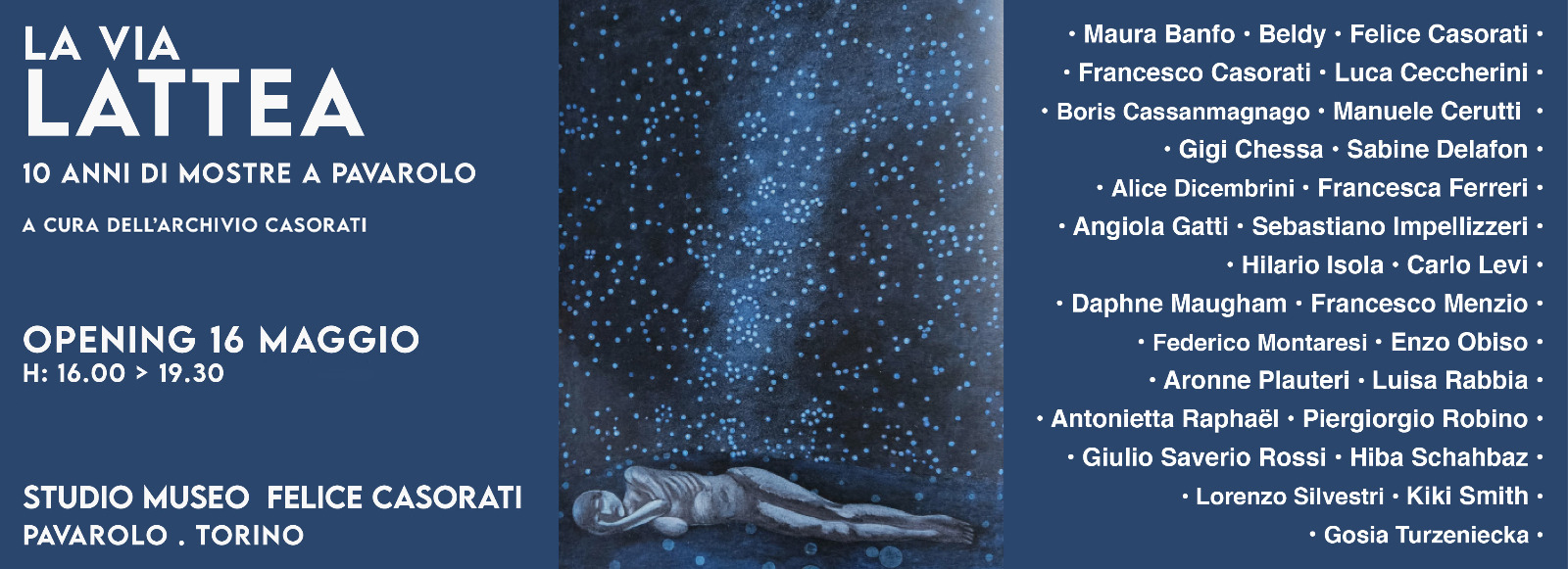 Il Comune di Pavarolo e l’Archivio Casorati celebrano quest'anno il primo decennio di attività dello Studio Museo Felice Casorati, con una grande mostra collettiva dal titolo «La Via Lattea» che apre al pubblico sabato 16 maggio e riunisce i protagonisti delle esposizioni 2016-2025, in un dialogo mai interrotto tra la memoria del Novecento e la ricerca contemporanea.