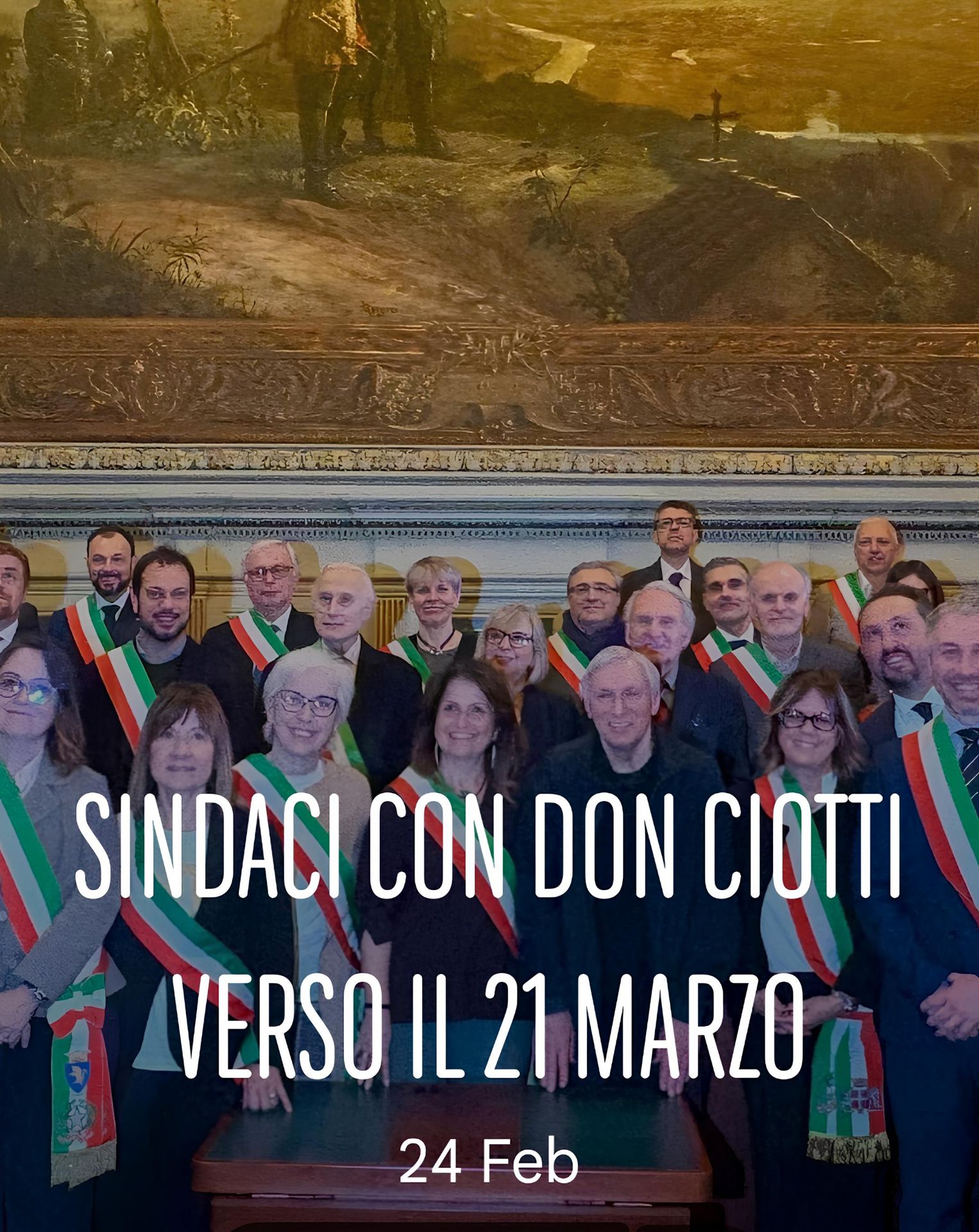 “Sono emozionato di incontrarvi” ha detto don Ciotti rivolgendosi alle decine di sindaci e sindache ed ha ricordato come Libera e il 21 marzo nascano dal suo rapporto con Giovanni Falcone. Poi ha parlato dell’allarme per la moltiplicazione delle droghe, dei disturbi dell’alimentazione, dei suicidi e delle dipendenze dal gioco d’azzardo e dal Web, ha ricordato le parole di don Sturzo quando diceva che la mafia sarebbe risalita a nord e oltre le Alpi, constatando quanto puntualmente si sia avverata la profezia.
