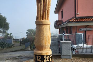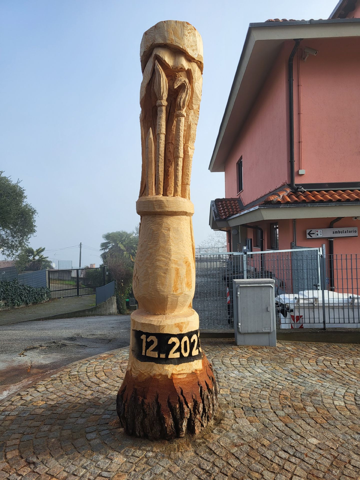 - La scultura realizzata da Flavio Favaro su tronco di pino